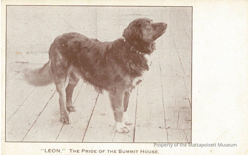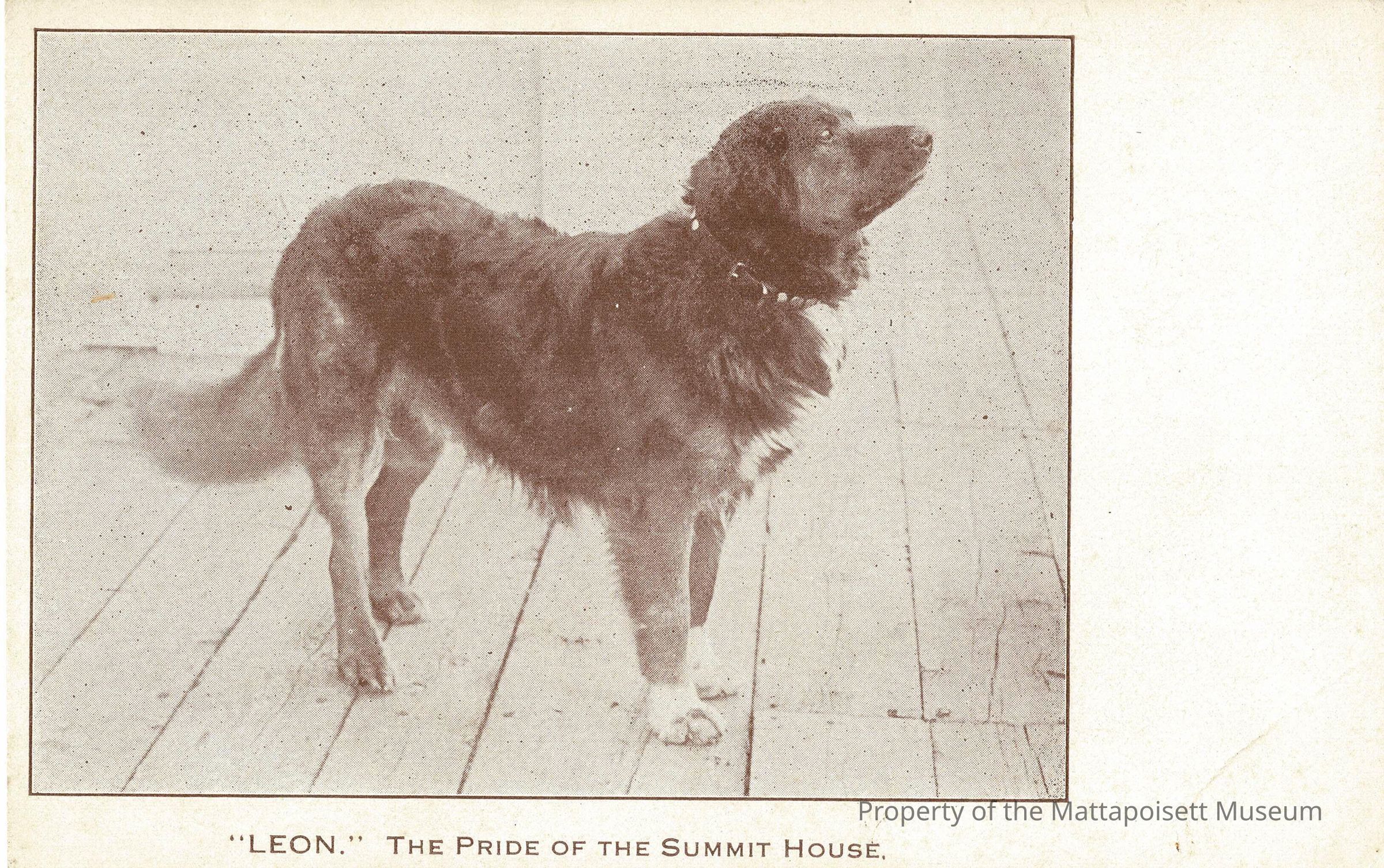 Sepia toned postcard showing a dog named "Leon", The Pride of the Summit House.Collection