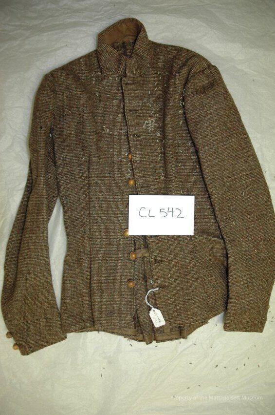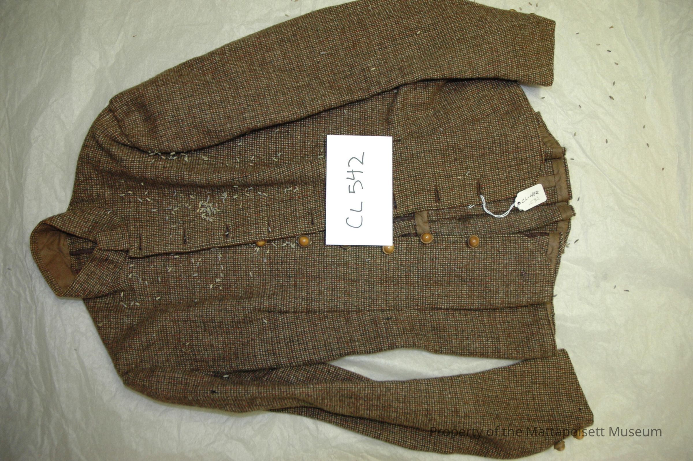 Notes: Notecard: Brown wool tweed waist; unlined mandarin collar.Created By