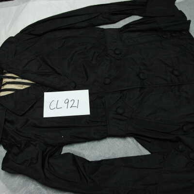 Long jacket with black and cream stripped lining. Weighted button on cuffs and waist and hem of jacket. Owned by Patricia Dennis. Small typed card has information (found in Provenance) on Mrs. Dennis and her family.Collection