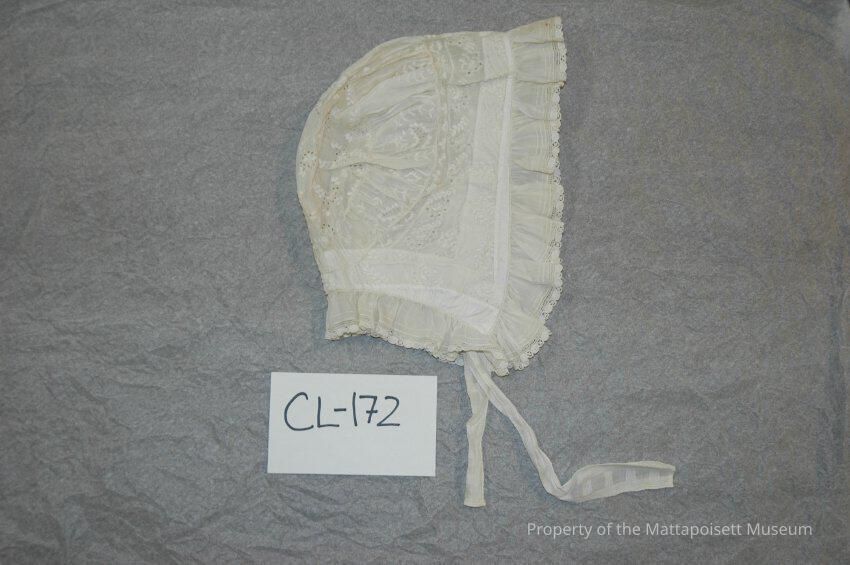 Child's bonnet, with ties. Eyelet lace and ruffled edgeCollection