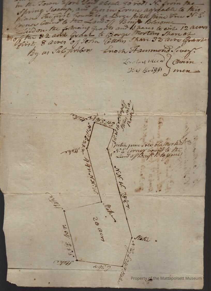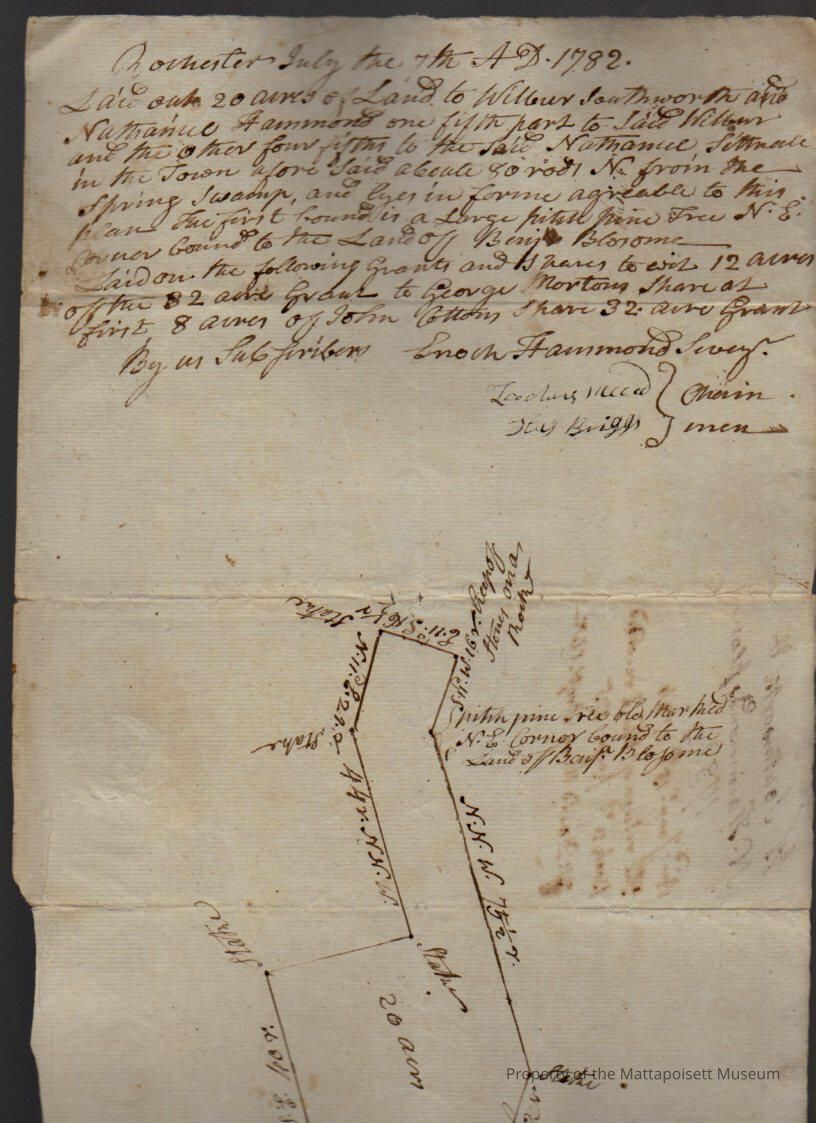 Plan of land containing 20 acres laid out to Wilbur Southworth (1/5) and Nathaniel Hammond (4/5), north of Spring Swamp. Enoch Hammond, surveyor.Collection