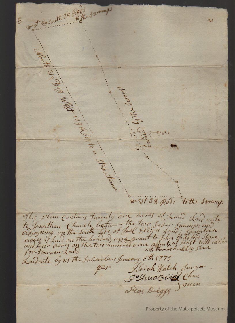 Plan of land containing 1 acre laid out to Jonathan Church. Isaiah Hatch, surveyor.Collection