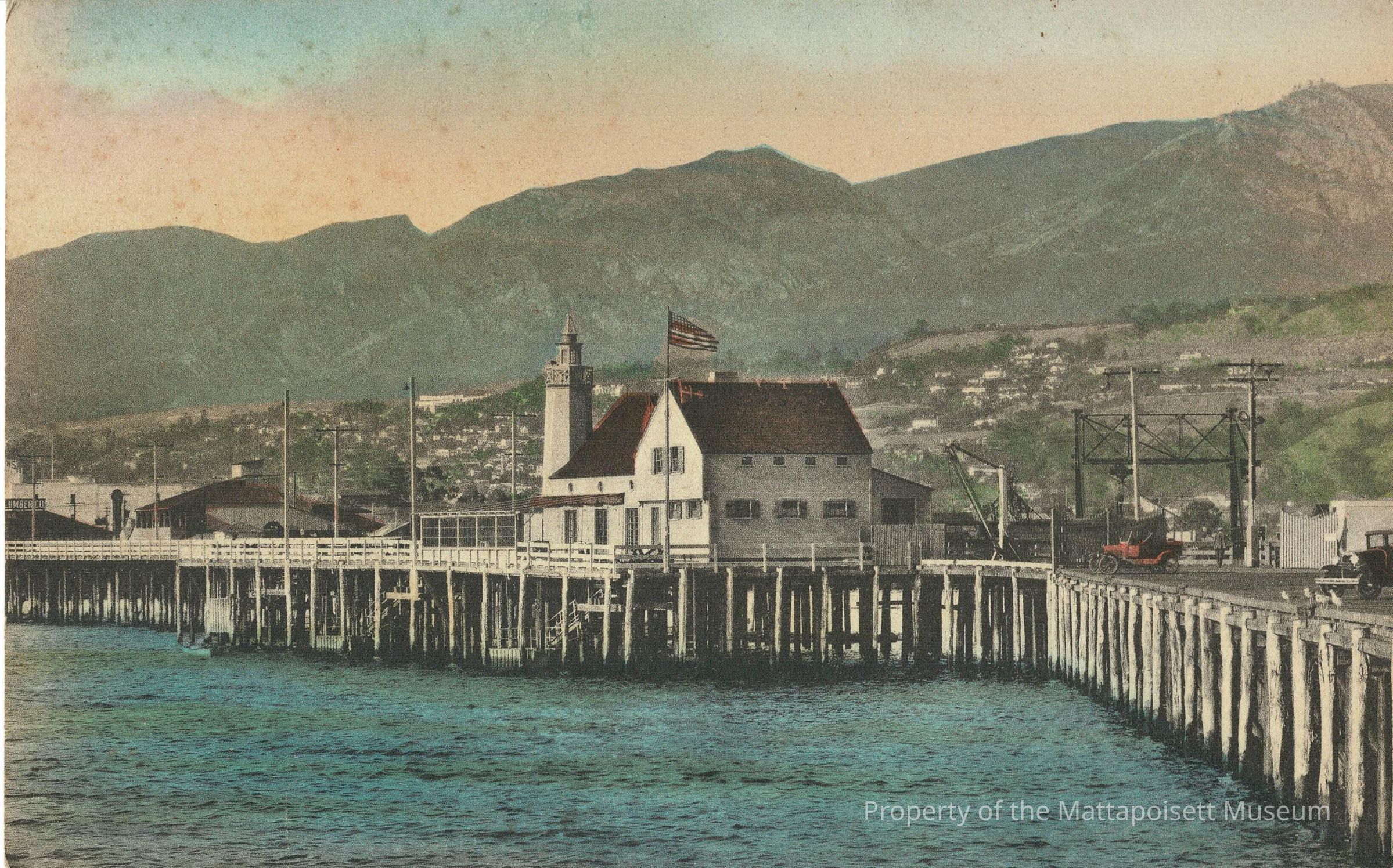 Hand-colored postcard showing Yacht Club, Santa Barbara, California.Collection