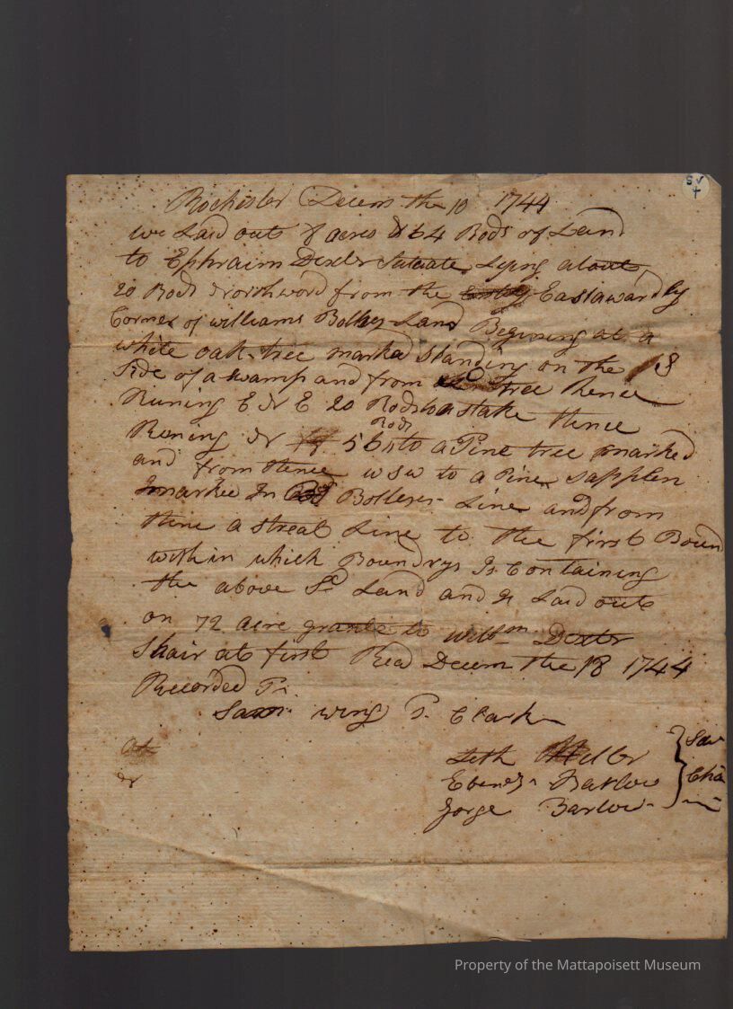 Description of 8 acres and 64 rods of land laid out to Ephraim Dexter. Seth Hiller, surveyor.Collection