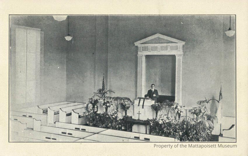 Black and white postcard showing Reverend Paul Myers, Pulpit Congregational Church (handwritten in pencil on reverse).Collection