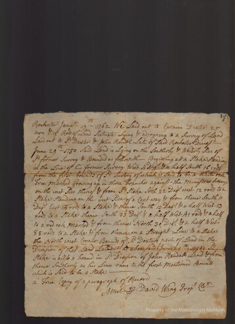Description of 25 acres and 15 rods of land laid out to Ephraim Dexter. Copy.Collection