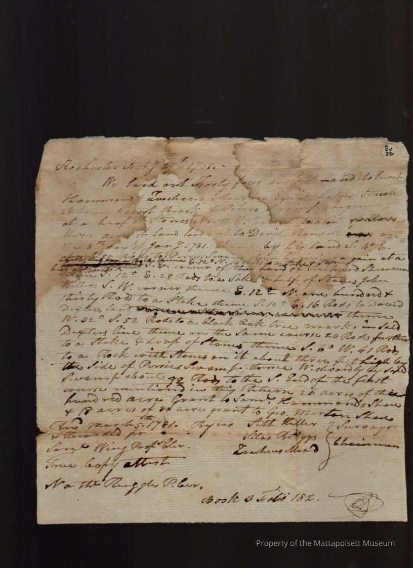 Description of 44 acres land laid out to Enoch Hammond, Zacheus Mead in equal halves in Accoot. Seth Hiller, surveyor.Collection