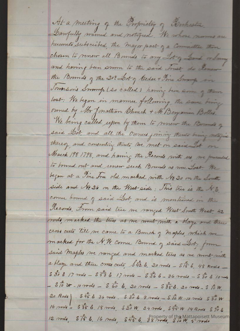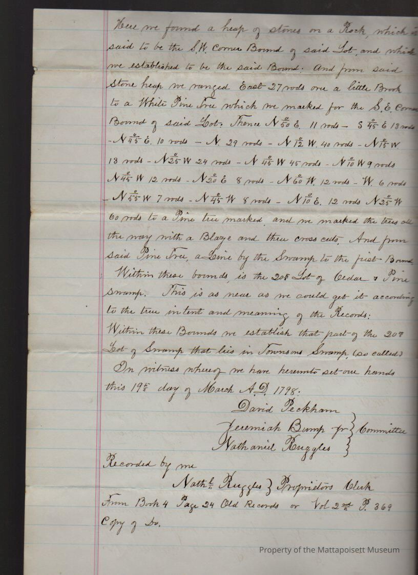 Renewal of bounds at Townson's Swamp by committee of David Peckham, Jeremiah Bumpus and Nathaniel Ruggles. Copy.Collection