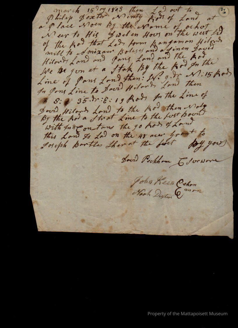 Description of 90 rods of land laid out to Philip Dexter in [Ockot]. David Peckham, surveyor.Collection