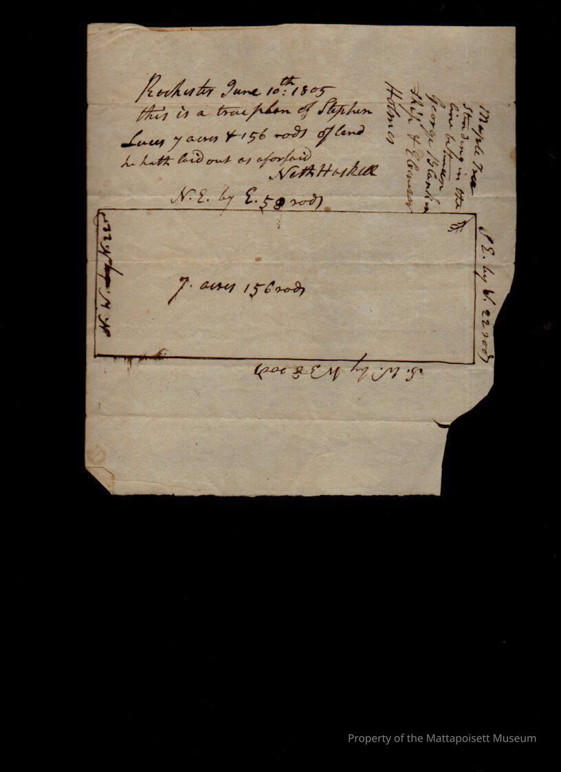 Plan of land, "true", containing 7 acres and 156 rods laid out to Stephen Luce. Nathan Haskell, surveyor.Collection