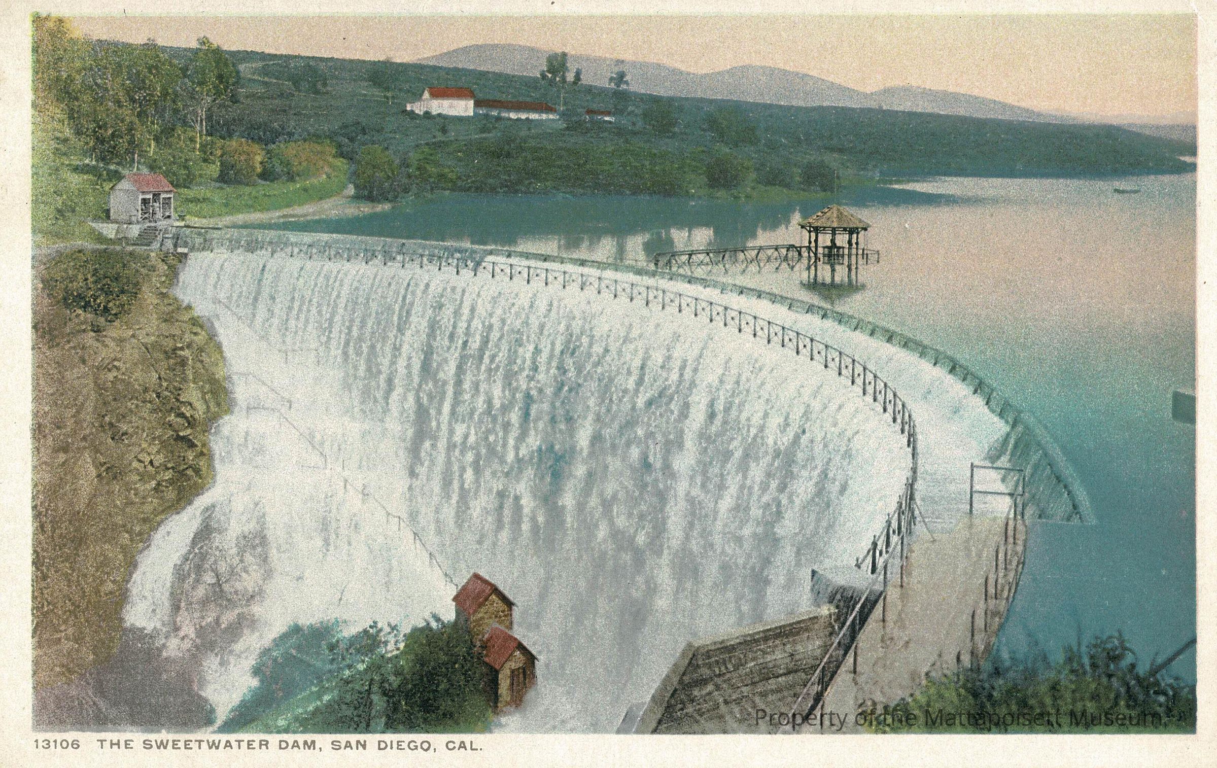 Hand-colored postcard showing The Sweetwater Dam, Sand Diego, Cal.Collection