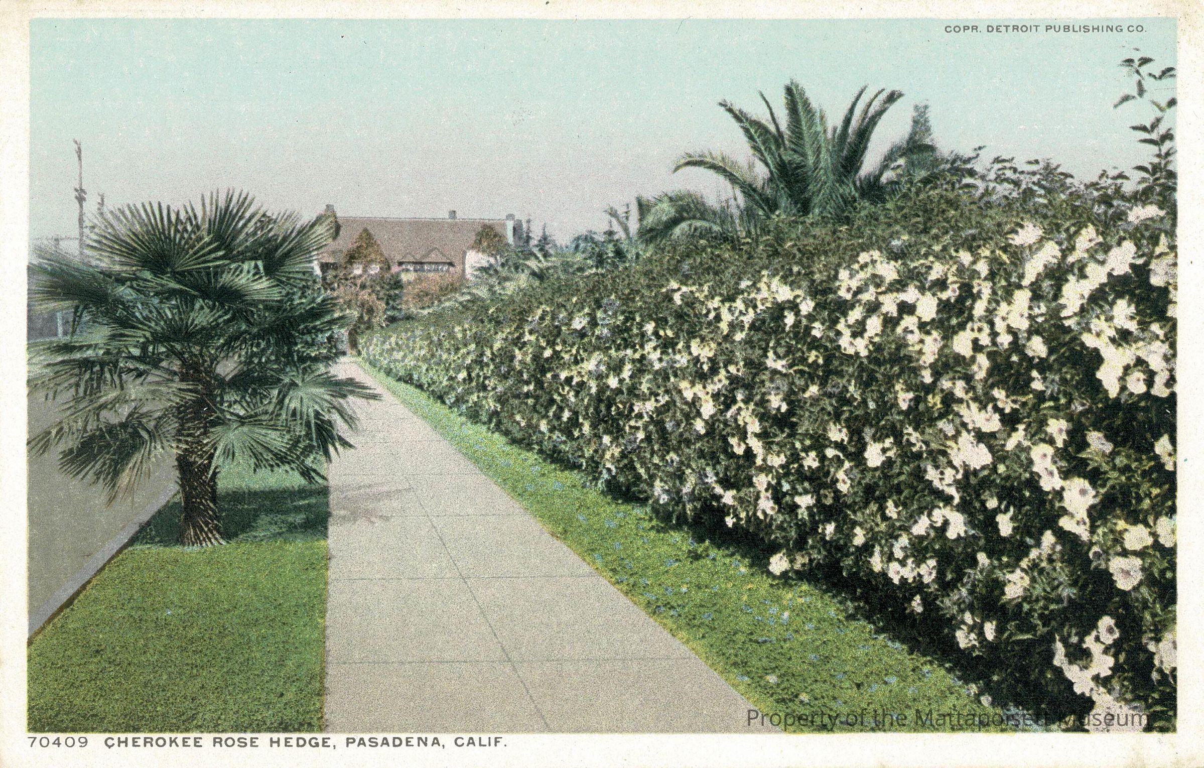 Hand-colored postcard showing Cherokee Rose Hedge, Pasadena, Calif.Collection