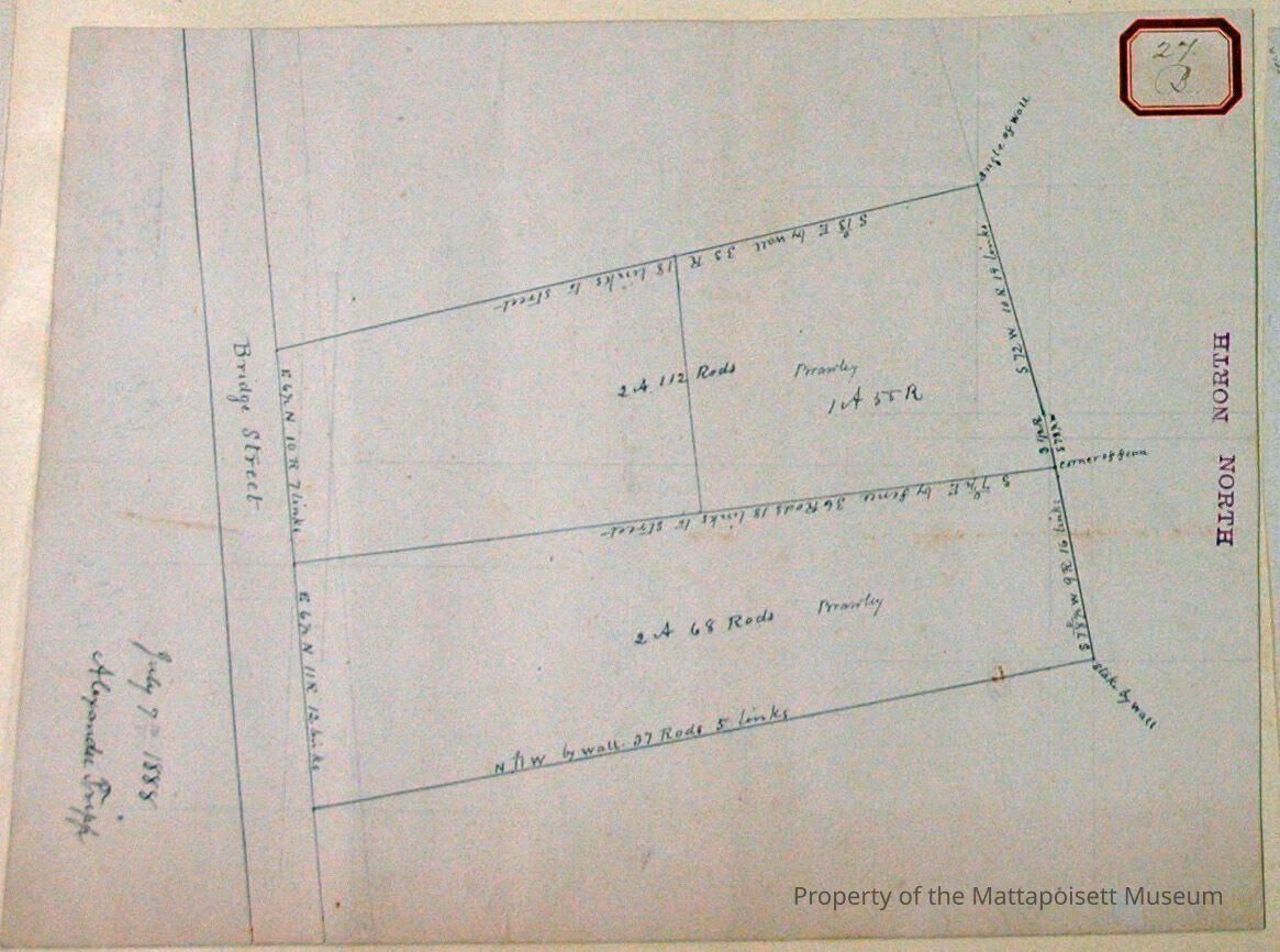 Alexander Tripp, July 7th, 1888. Three properties off Bridge Street. 2 Acres, 112 Rods; 2 Acres, 68 Rods; 1 Acre, 35 Rods.Acquisition