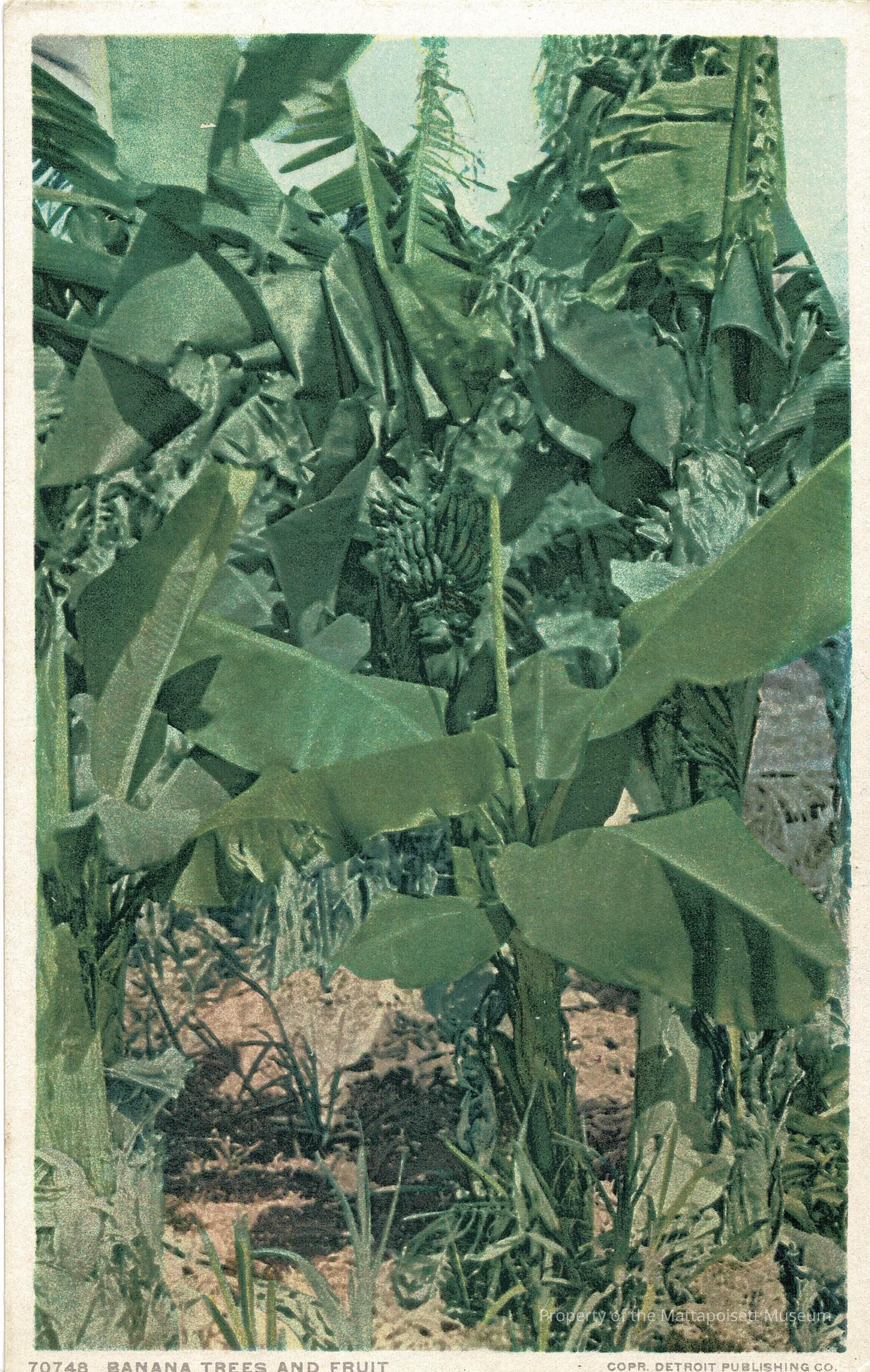 Hand-colored postcard showing Banana Trees and Fruit.Collection