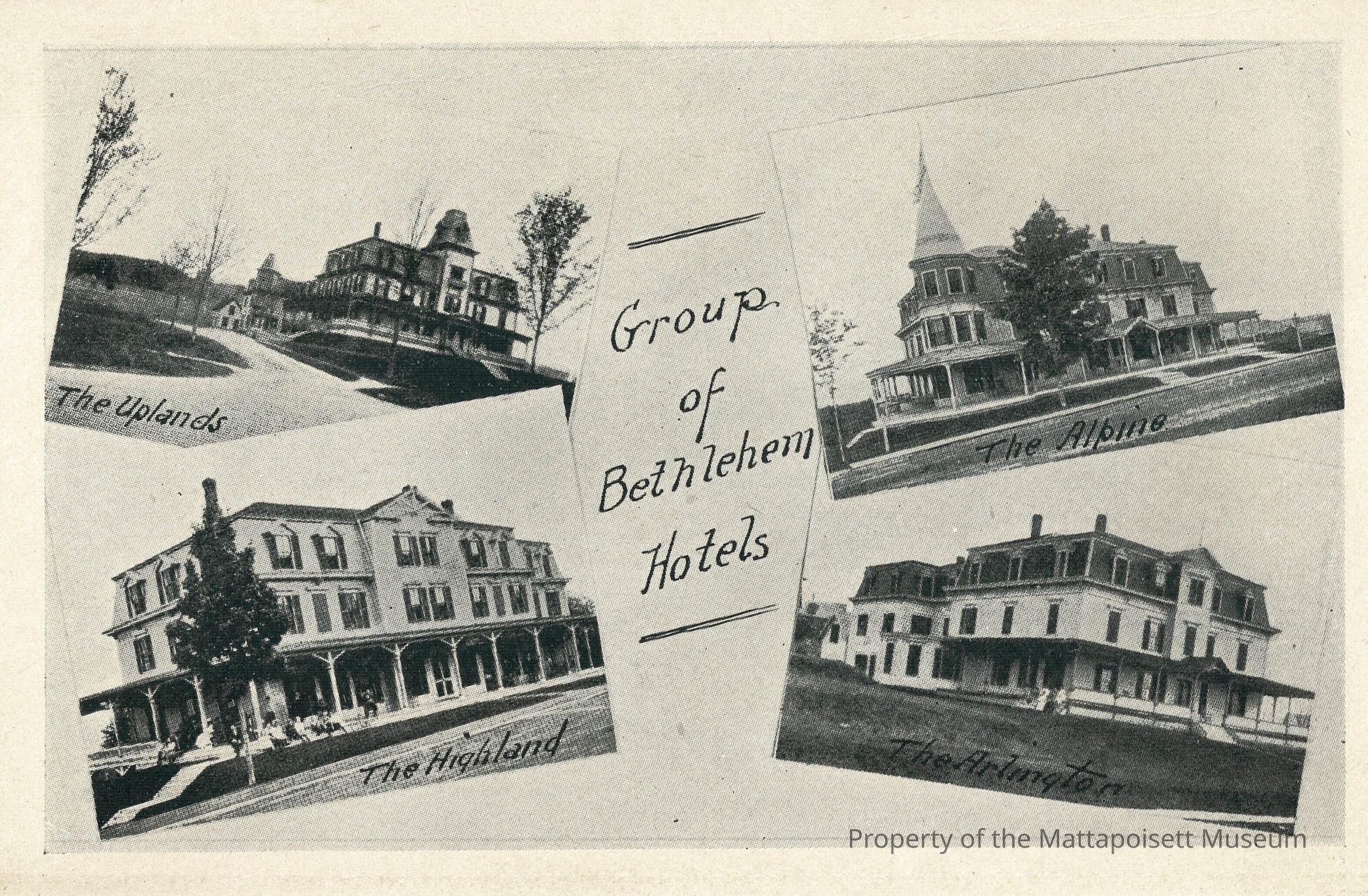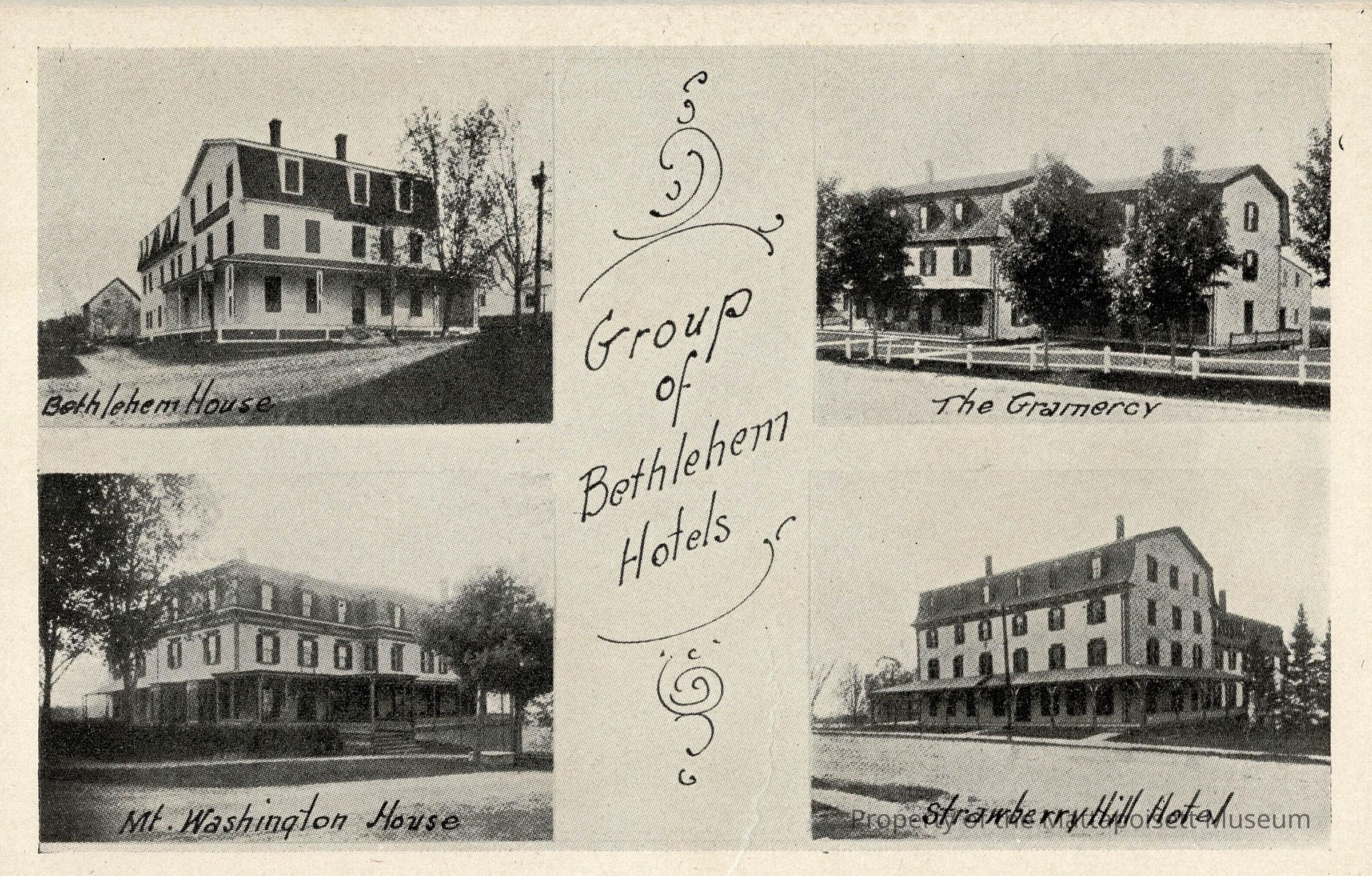 Black and white postcard pack with 23 views of White Mountains, N.H. The views include: Mount Washington from Lower Gateway Crawford Notch; The Natural Notch, looking toward the Crawford House; Crawford House & Lake White Mountains of New Hampshire; The Fabtyan House White Mountains of New Hampshire; From Crawford House Verandah looking toward the Notch; The Mount Pleasant House, White Mountains of N.H.; Jacobs Ladder on Mt. Washington Roadway; Approach to Summit House, The Lizzie Bourne Monument; The Waumbek &n Cottages, at Jefferson in the White Mountains; The Summit House, Mt. Washington; Mount Aggassiz from Bethlehem; The Profile, Franconia Notch; New Mt. Washington Hotel, Bretton Woods, N.H.; Lake of the Clouds, Mt. Washington; Group of Bethlehem Hotels (2 photos); The Turner House & Spring Bethlehem, N.H.; The Sinclair Bethlehem, N.H.; The Maplewood Hotel, Bethlehem, N.H.; Cascade above the Flume; The Flume, Boulder Disloged June 30, 1883; The Profile House & Cottages Franconia Notch; Profile Lake, Franconia Notch.Collection