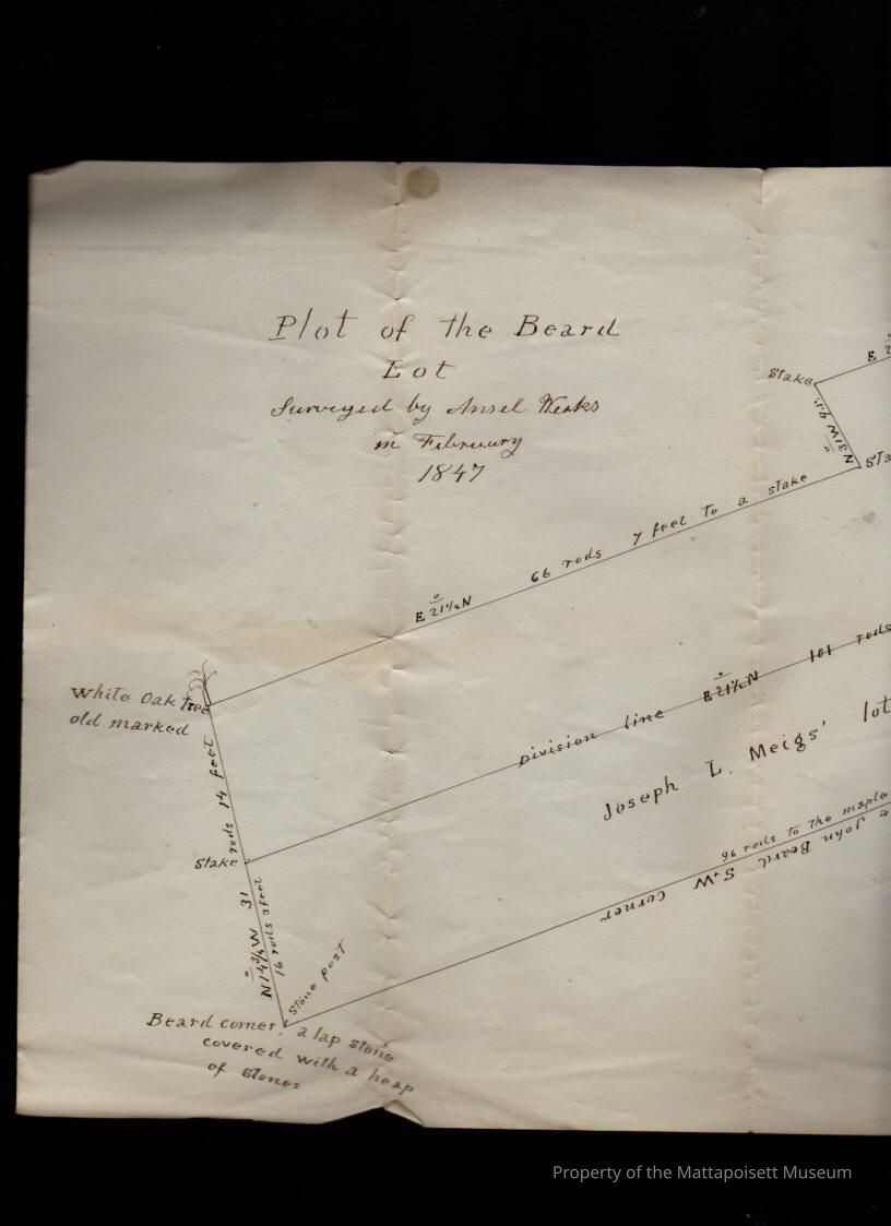 Plot of the Beard Lot, surveyed by Ansel Weeks. Division line with Joseph L. Meigs' Lot, 19 7/8 acres.Collection
