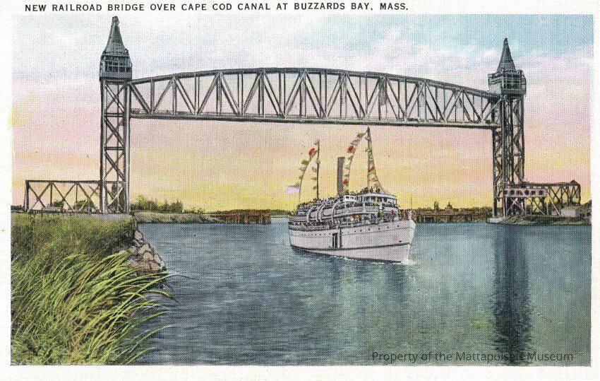 Hand-colored postcard showing New Railroad Bridge Over Cape Cod Canal At Buzzards Bay, Mass.Collection