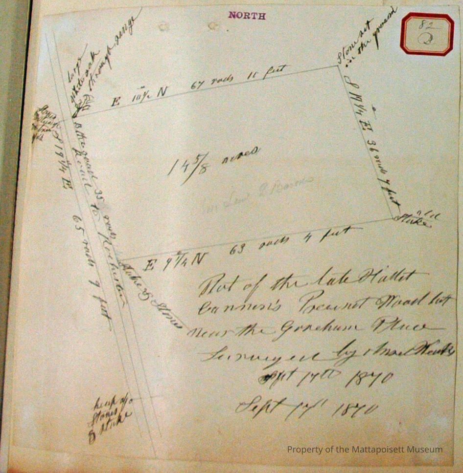 Plot of the late Hallet Cannon's Precinct wood lot near the Gorham place surveyed by Ansel Weeks, September 17th, 1870. On Road to Rochester. Later owned by Lemuel LeBaron.Acquisition