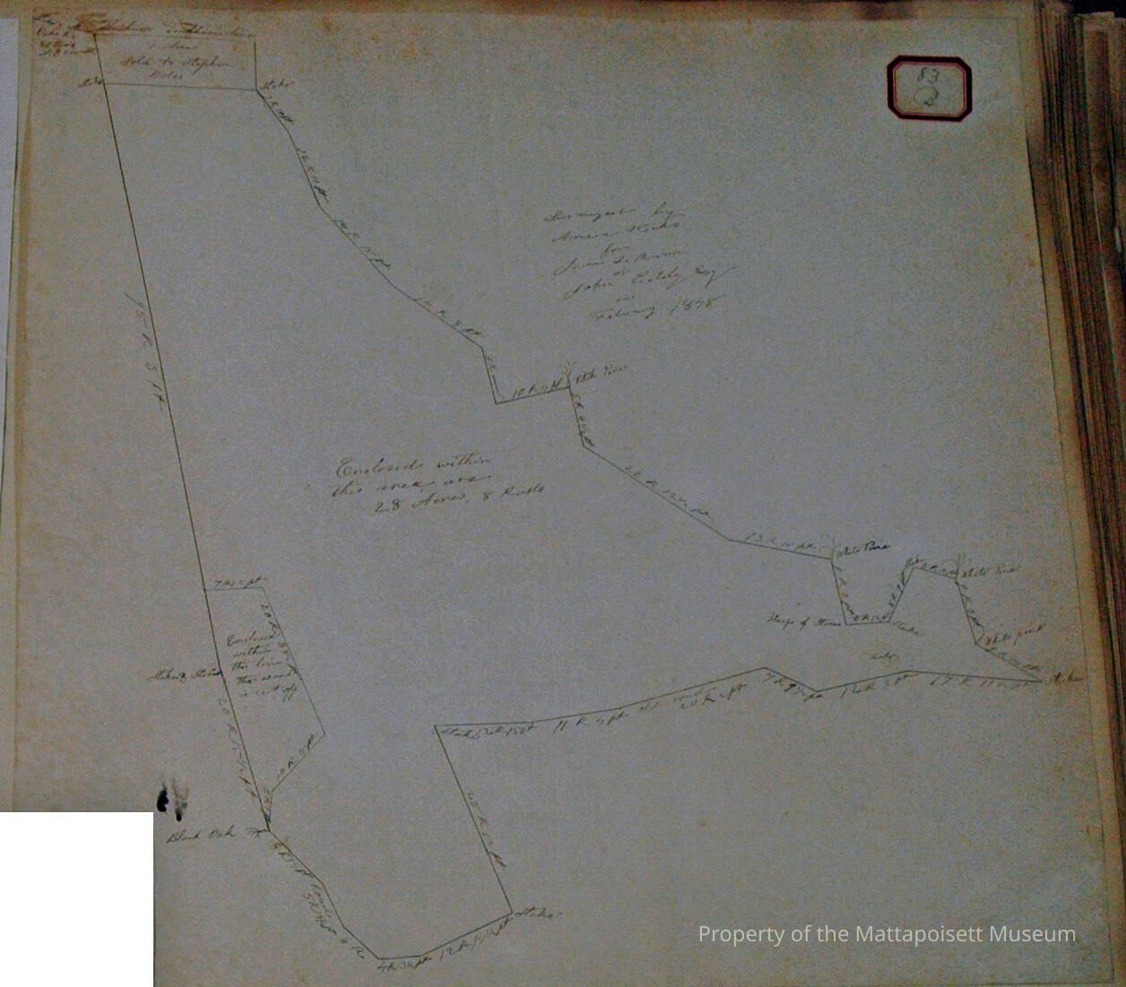 Surveyed by Ansel Weeks for James LeBaron and John ? Esq. in February 1848. Abraham Tinkham's line. 1 acre sold to Stephen Bolles. Larger area is 28 acres, 8 rods. Within small area "wood is cut off"Acquisition