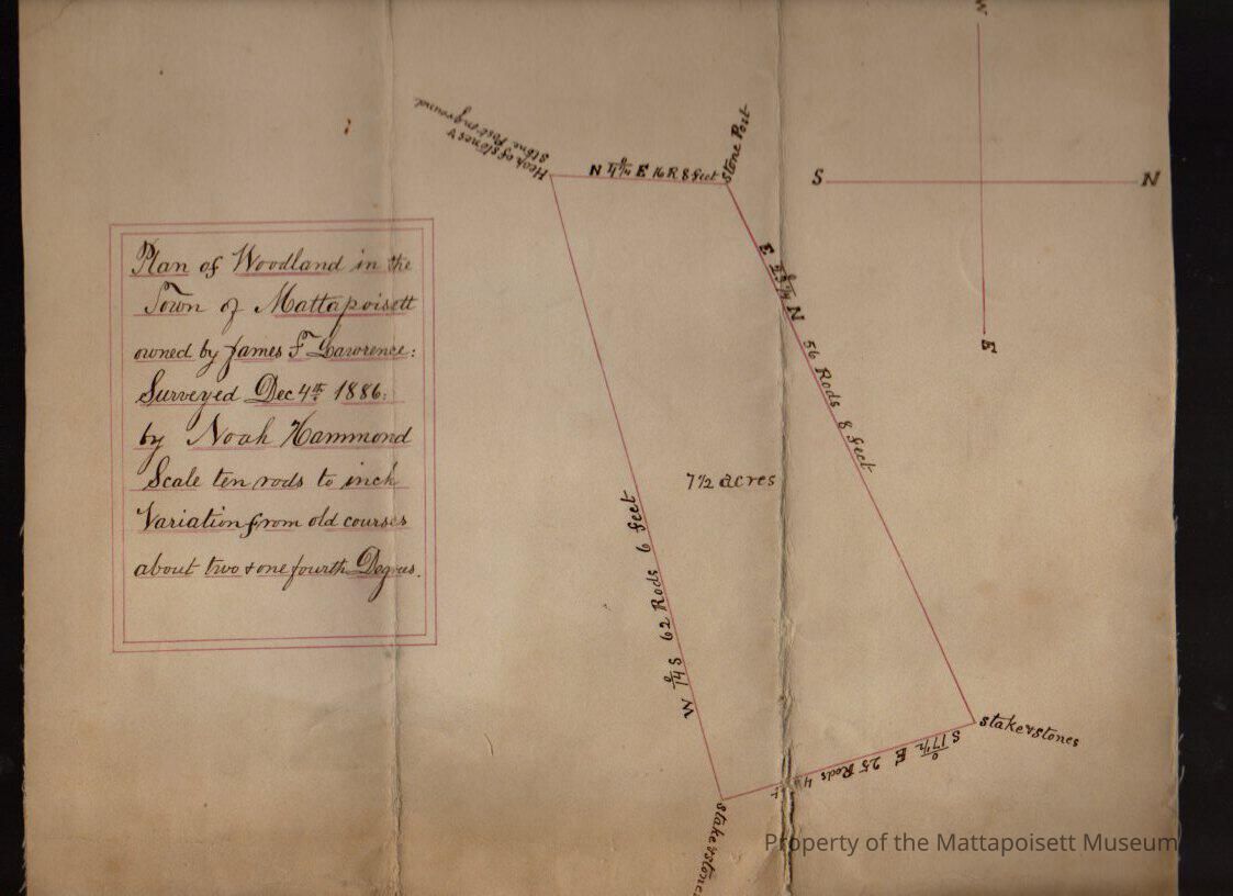 Plan of 7 1/2 acre wood land in the town of Mattapoisett owned by James F. Lawrence, surveyed by Noah Hammond.Collection