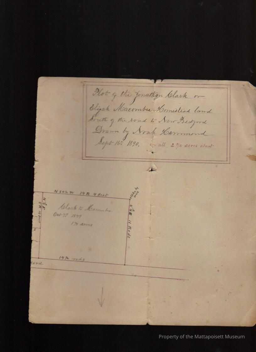 Plot of the Jonathan Clark or Elijah Macomber homestead land, south of the road to New Bedford, about 2 3/4 acres total. Clark to Macomber Octover 7, 1849.Collection