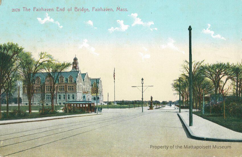Hand-colored postcard showing The Fairhaven End of Bridge, Fairhaven, Mass.Collection