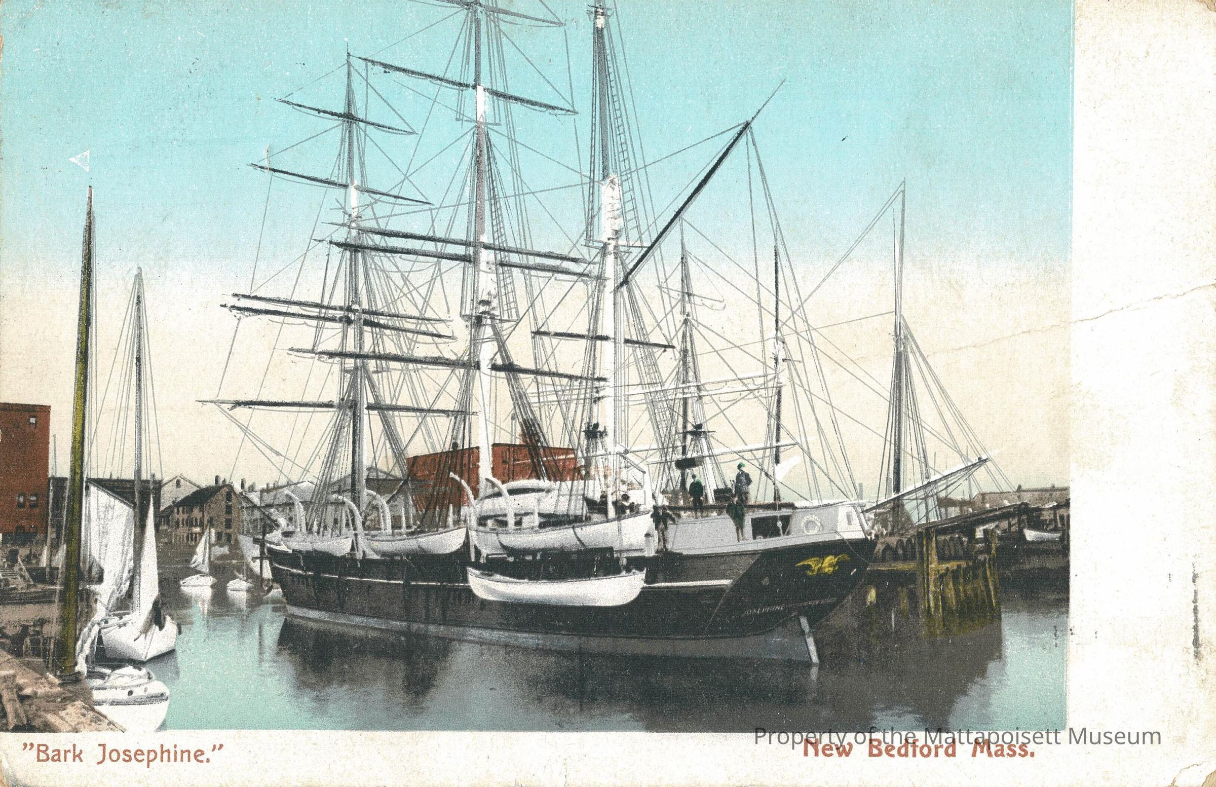 Hand-colored postcard showing "Bark Josephine", New Bedford, Mass. Handwritten addressed to Capt. Geo. W. Bourne, Concord Junction, Mass. Postmarked from Mattapoisett, Mass. on March (date not legible), 1906 and received in Concord Junction, Mass. on March 28, 1906.Collection