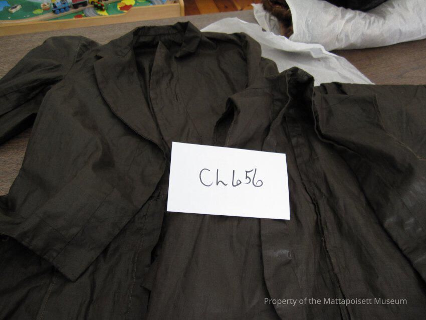 Notes: Notecard: Boy's dark brown suit. Polished cotton. Swallowtail jacket.