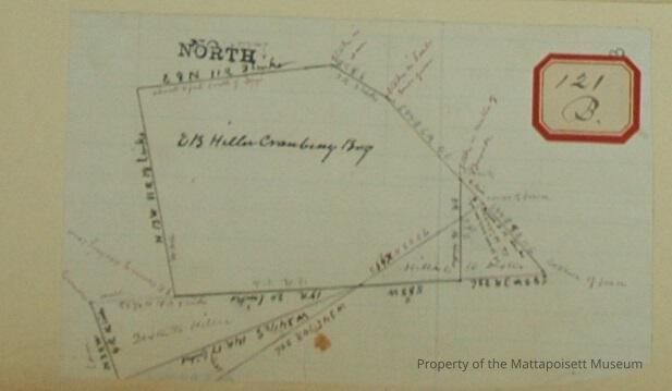 E. B. Hiller cranberry bog, area labeled: Dexter to Hiller, third labeled: Hiller to Dexter. Abutter: Cushing.Acquisition