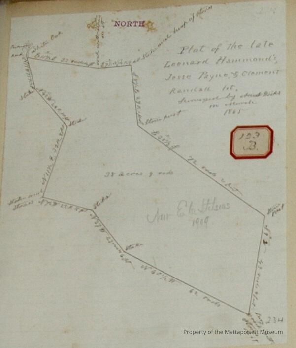 Plot of the late Leonard Hammond's Jesse Payne & Clement Randall lot. Surveyed by Ansel Weeks in March 1865. 38 acres, 9 rods. E. C. Stitson's in 1909.Acquisition