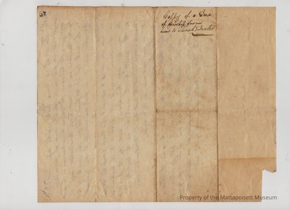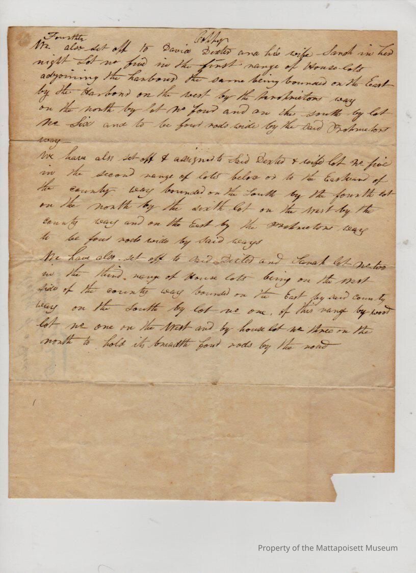 Copy of a deed of heirship from heirs to Sarah Dexter, description. Adjoining harbor.Collection