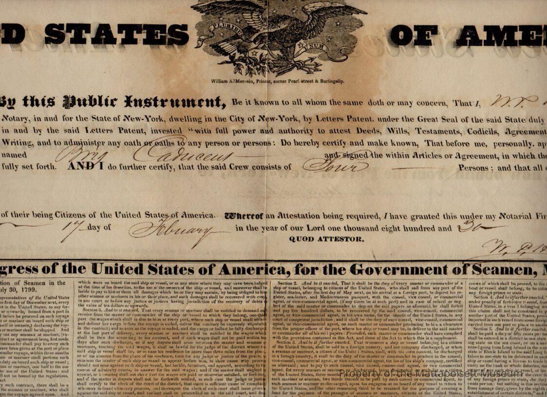 Brig "Caduceus", handwritten notes, crew and cargo document.Collection