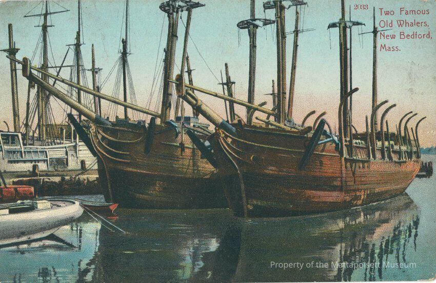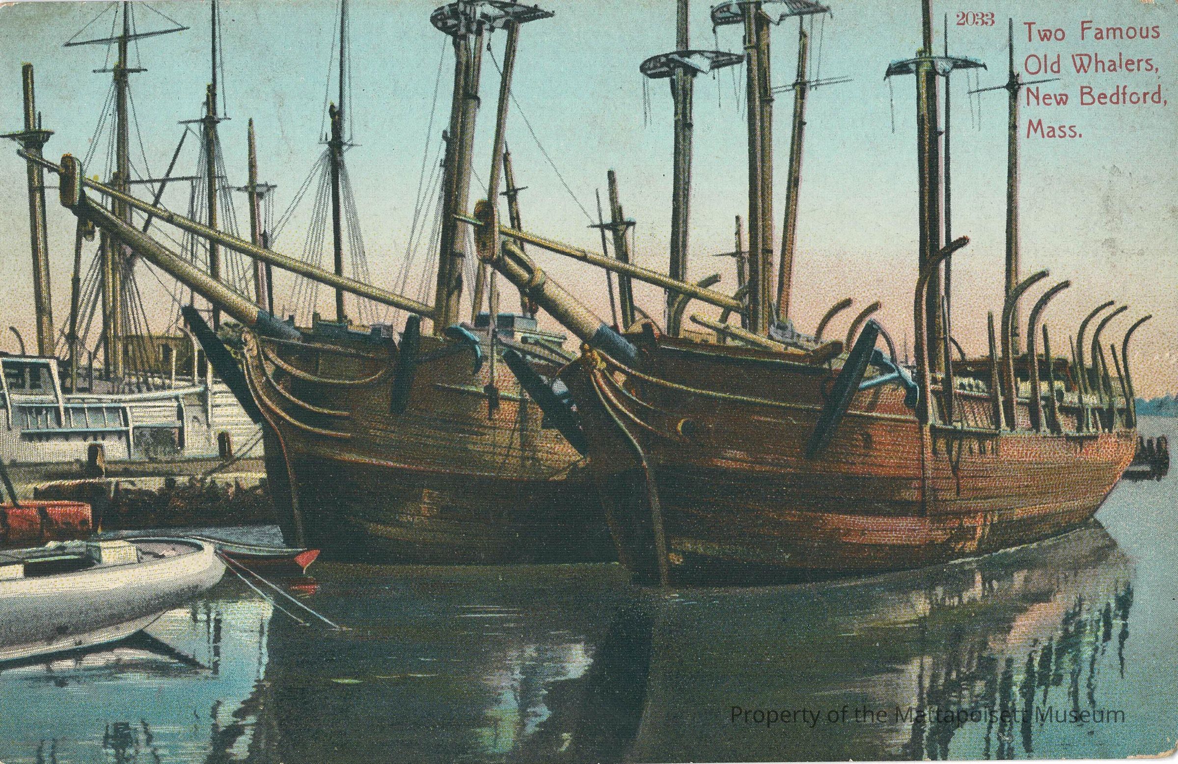 Hand-colored postcard showing Two Famous Old Whalers, New Bedford, Mass.Collection