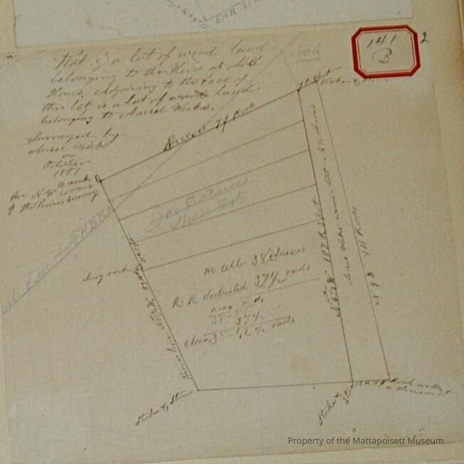 Plot of a lot of wood land belonging to the Heirs of Abel Howes (in all 38 1/2 acres, Railroad crosses and deducted at 37 1/2 rods), adjoining to the east of this lot is a lot of wood land belonging to Ansel Weeks (6 1/2 acres). Surveyed by Ansel Weeks on October 1851. Later, James LeBaron house lot.Acquisition