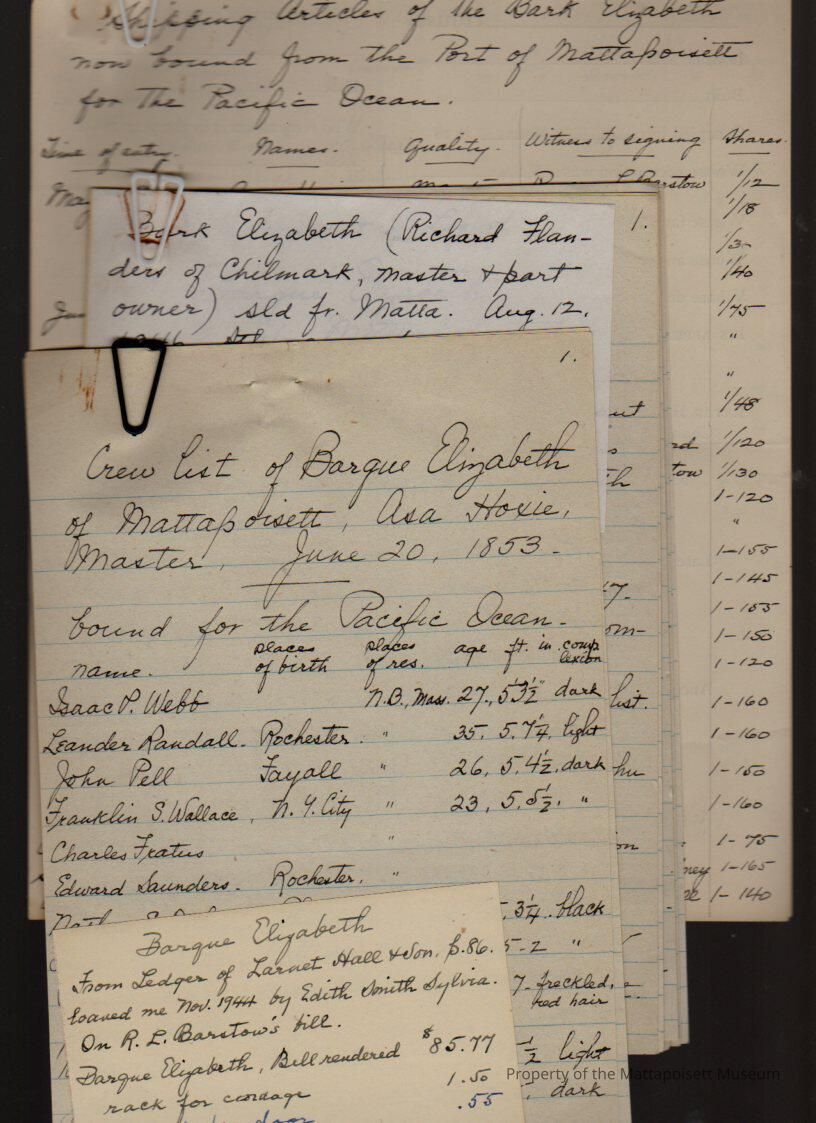 Bark "Elizabeth", handwritten notes, photocopies.Collection