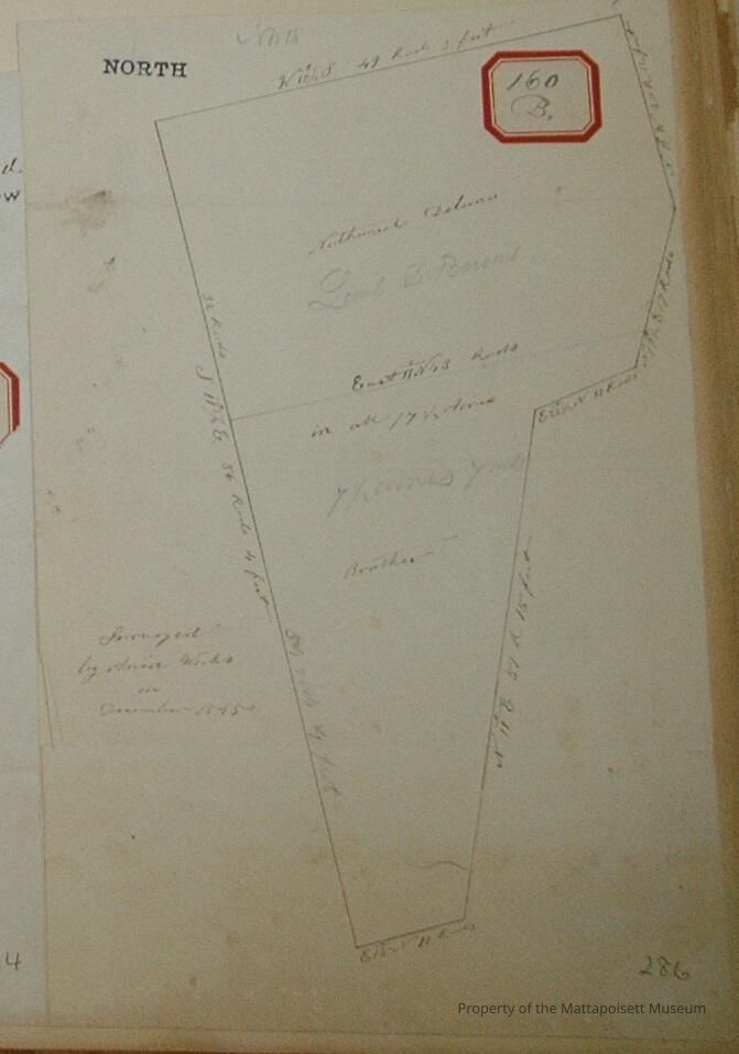 Surveyed by Ansel Weeks in December 1845, in all 17 1/2 acres. Nathaniel Delano, now Lemuel LeBaron.Acquisition