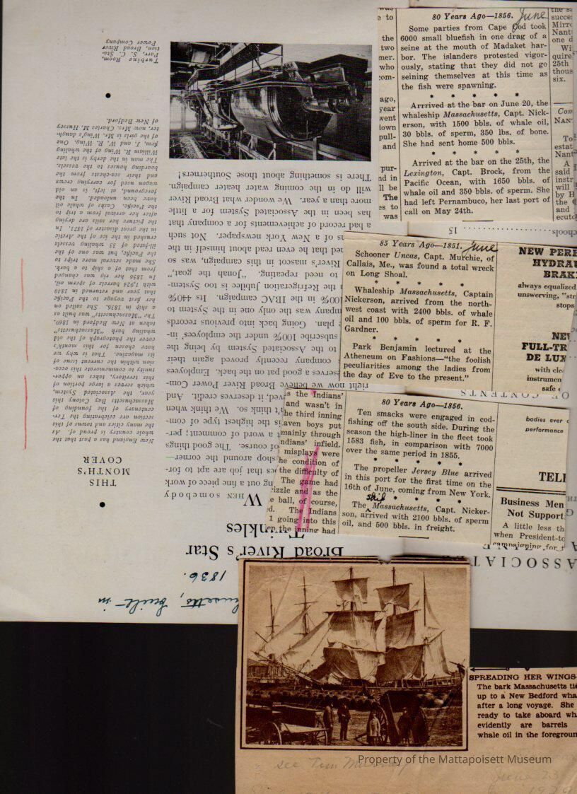 Brig "Massachusetts", newspaper articles, booklet, handwritten notes.Collection