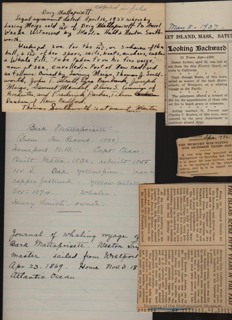 Bark "Mattapoisett", newspaper articles, handwritten notes.Collection