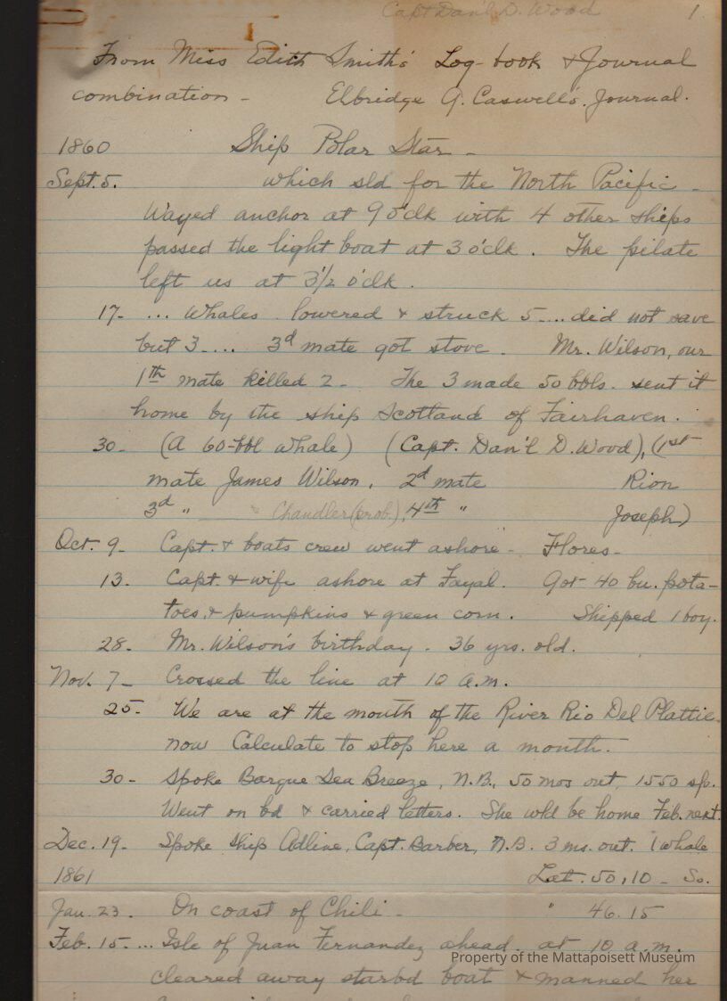 Ship "Polar Star", handwritten notes/log transcription.Collection