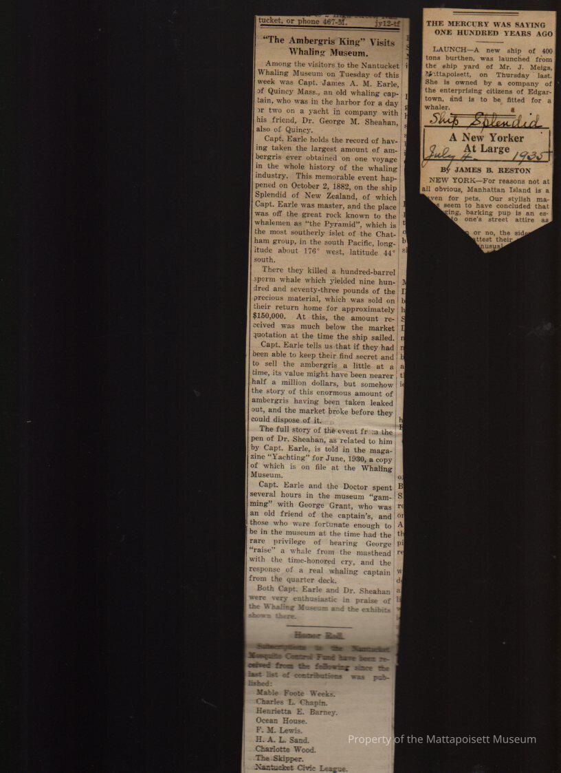 Bark "Splendid", newspaper articles, handwritten notes.Collection