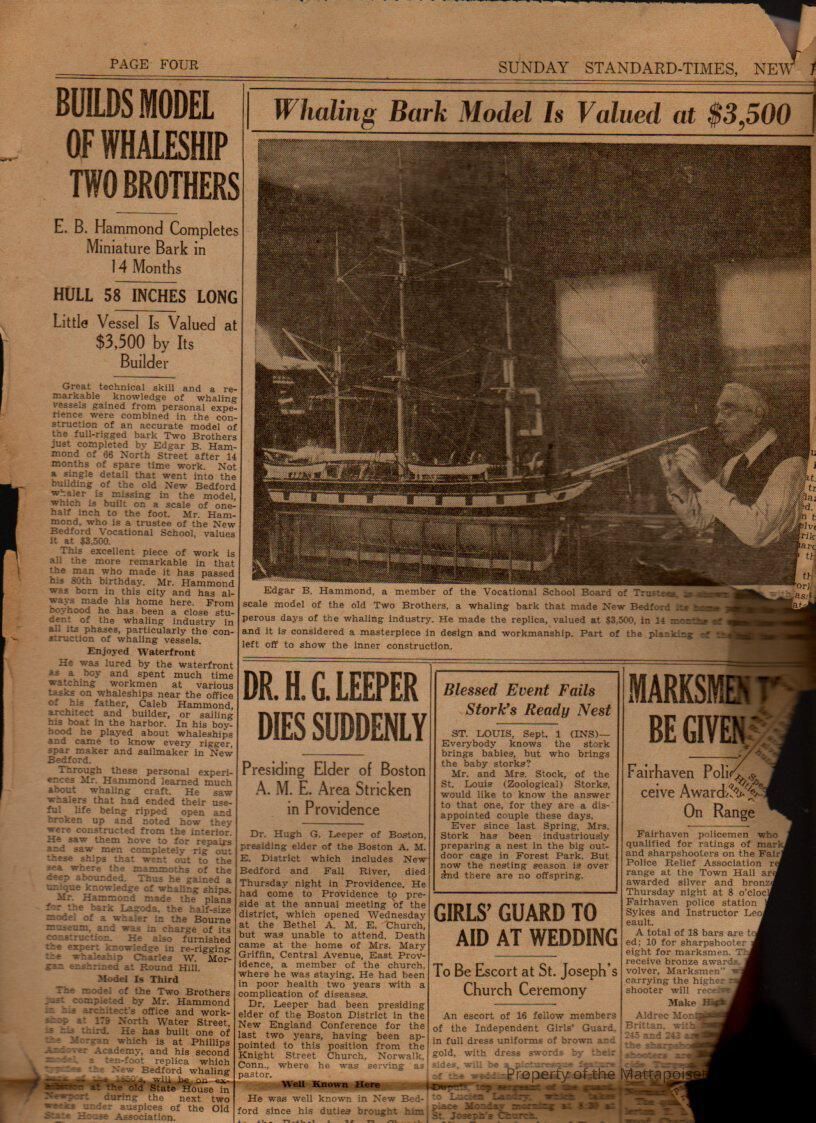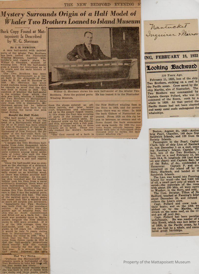 Bark "Two Brothers", newspaper articles, handwritten notes.Collection