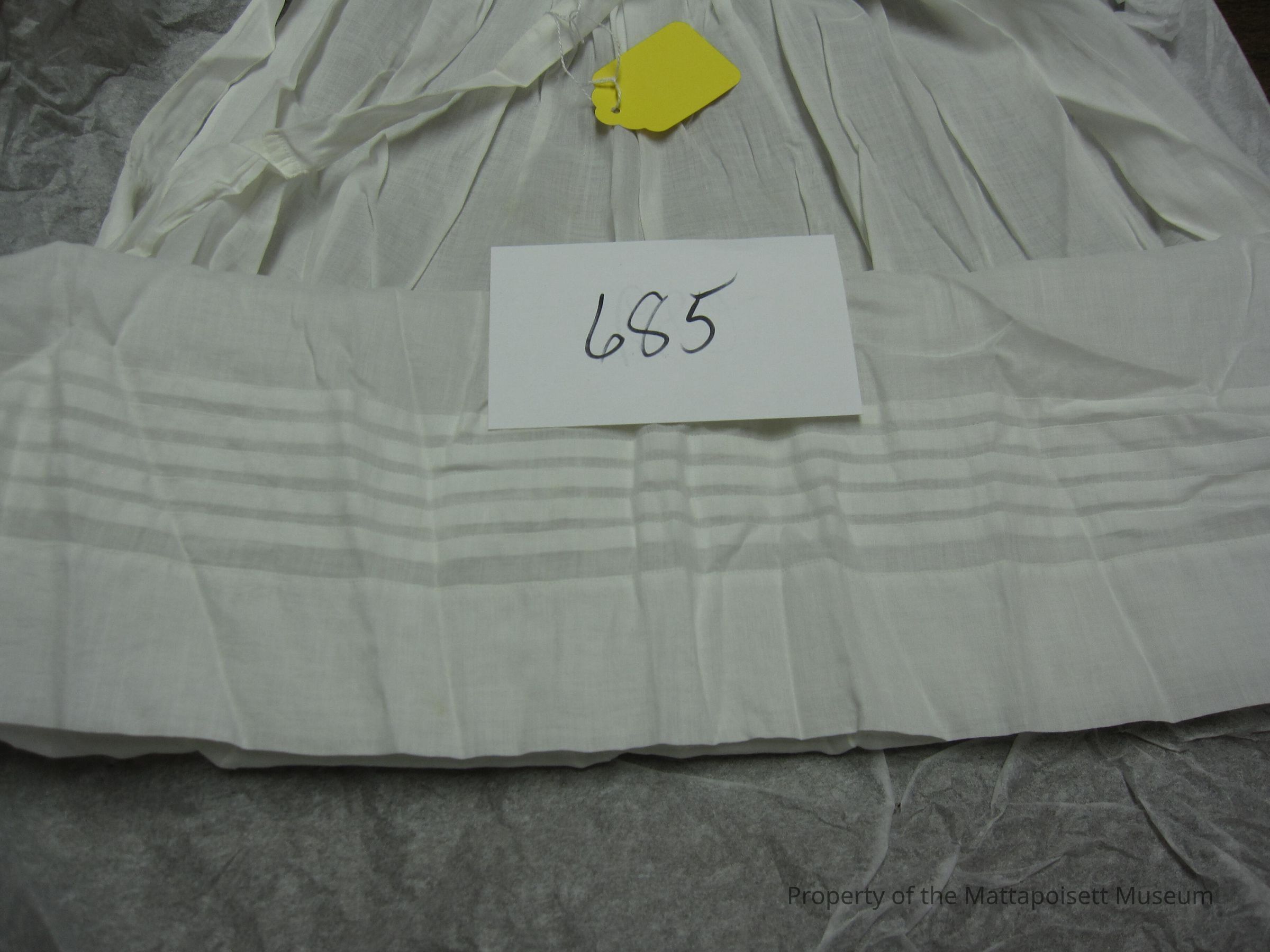 Notes: Notecard: Mid-length apron. Tucked detail at hem.