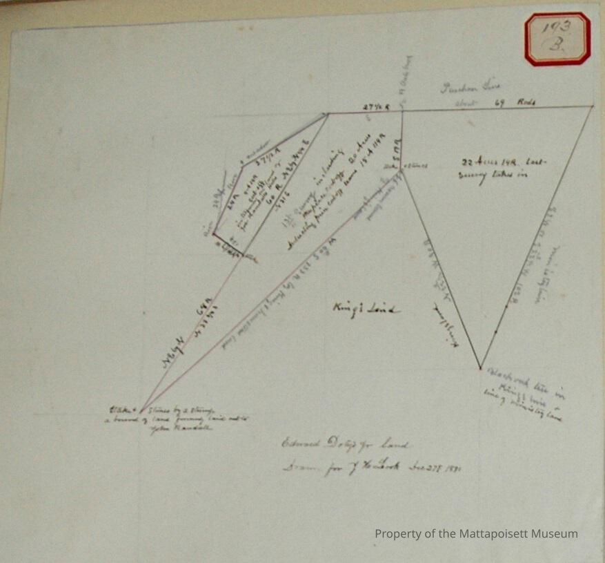 Edward Doty's for land drawn for Y. H. Look, December 27th, 1881. King's land abutting. 3 sections at 4 acres and 14 rods, 15 acres and 114 rods, 22 acres and 19 rods.Acquisition