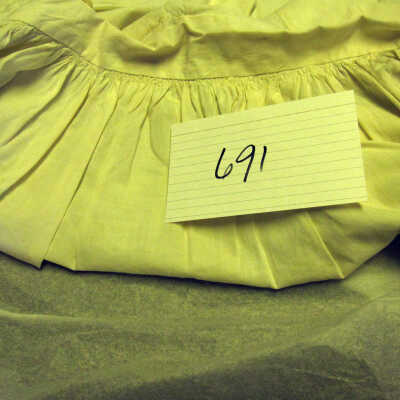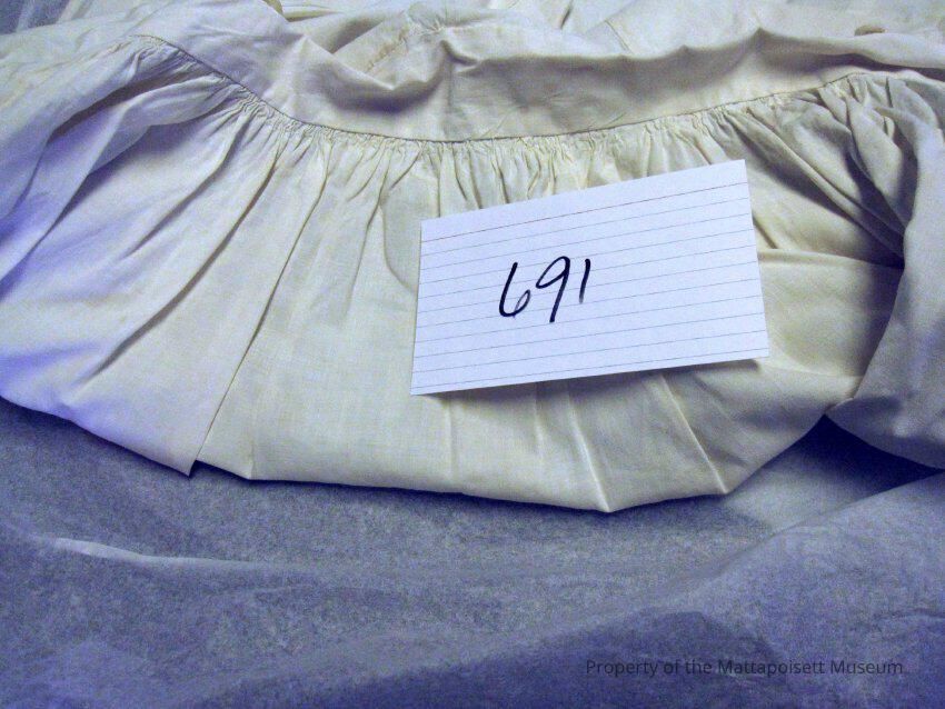Notes: Notecard: White cotton half apron, bib top.