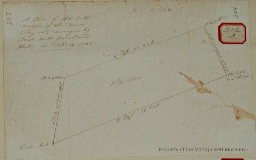 A plan of the south division of the Deacon Tobey lot. Surveyed by Ansel Weeks for Martin Hall in February 1848. Area 10 ¾ acres.Acquisition