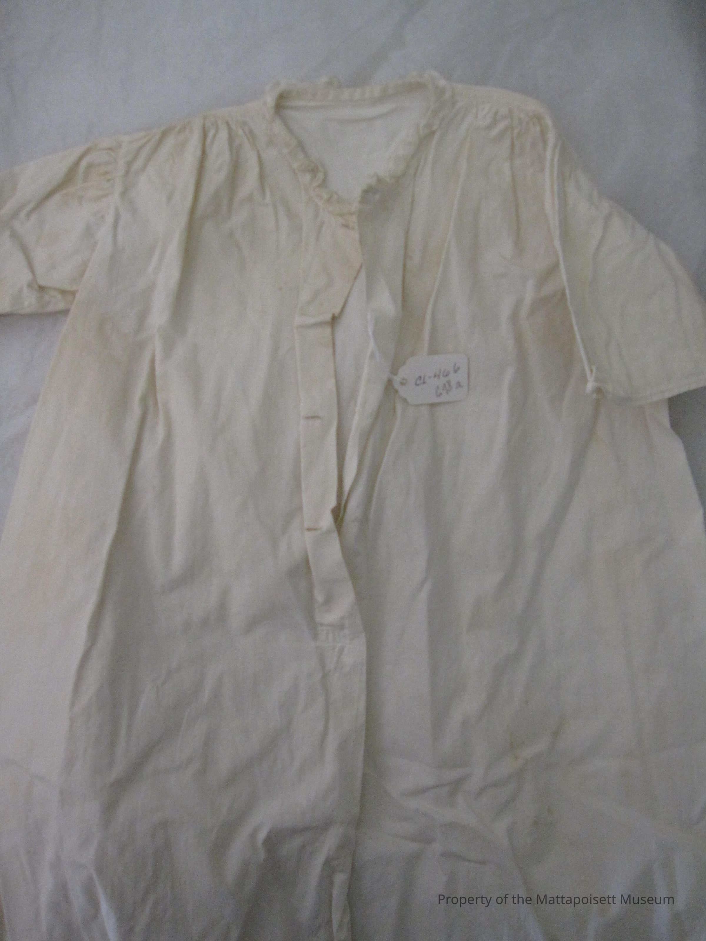 Child's white cotton nightdress. Simple lace detail at collar. Short sleeves.Collection
