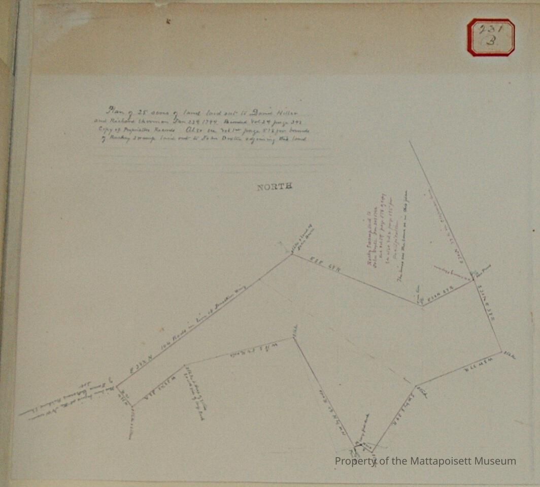 Plan of 25 acres of land laid out to David Hiller and Richard Sherman January 24nd, 1794. Vol. 24, page 393, copy of Proprietors records. Also see - vol. 1, page 578 per bounds of Rocky swamp laid out to John Dexter adjoining this land.