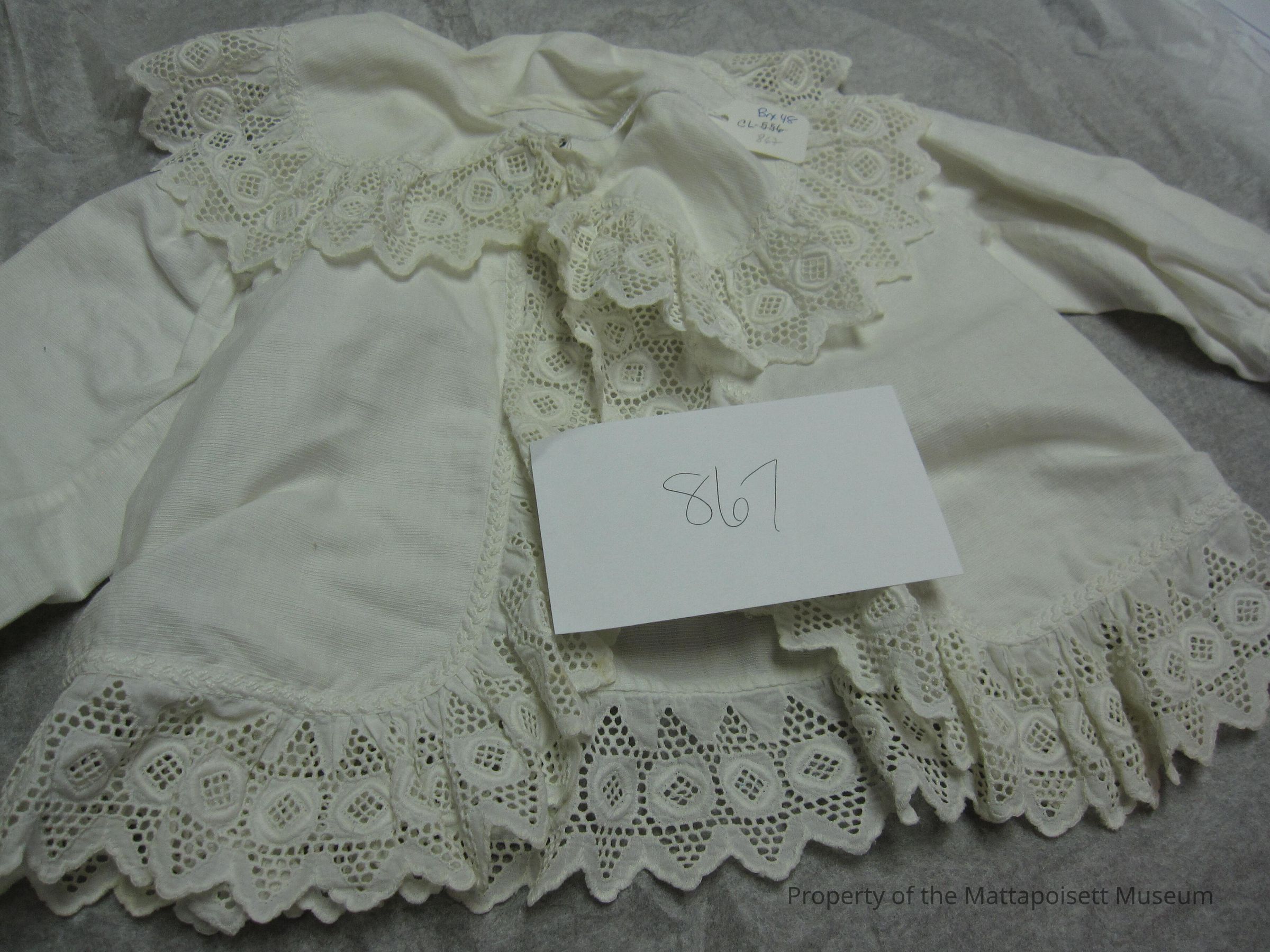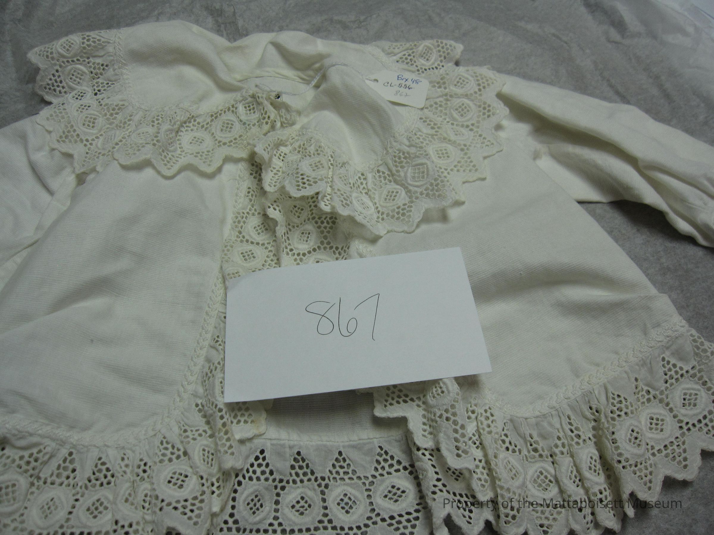 Notes: Notecard: Child's white dress, cotton, heavy eyelet trim.