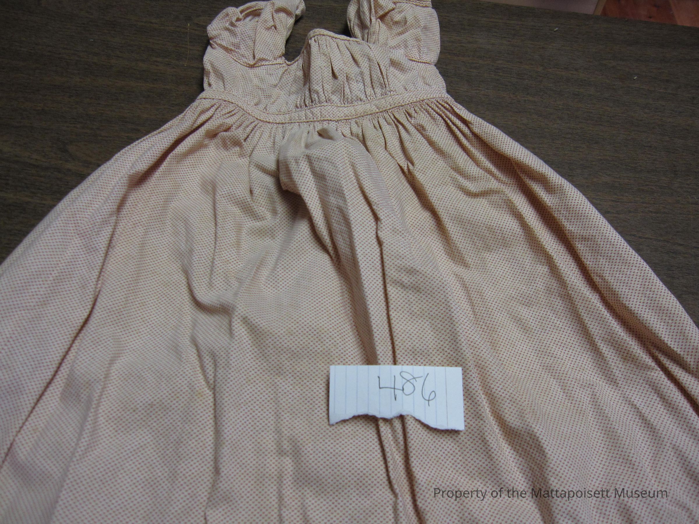 Notes: Notecard: Child's off-white dress, cotton, red-dot print.