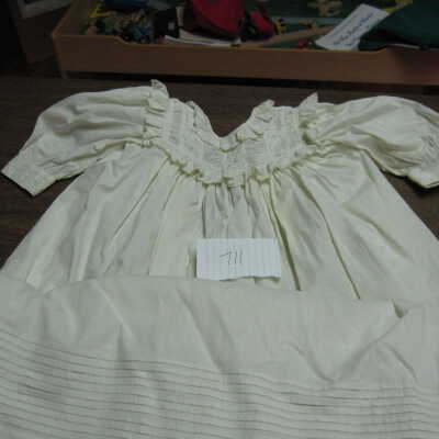 Child's white, heavy cotton christening dress. Shirred, with eyelet and embroidery.Collection